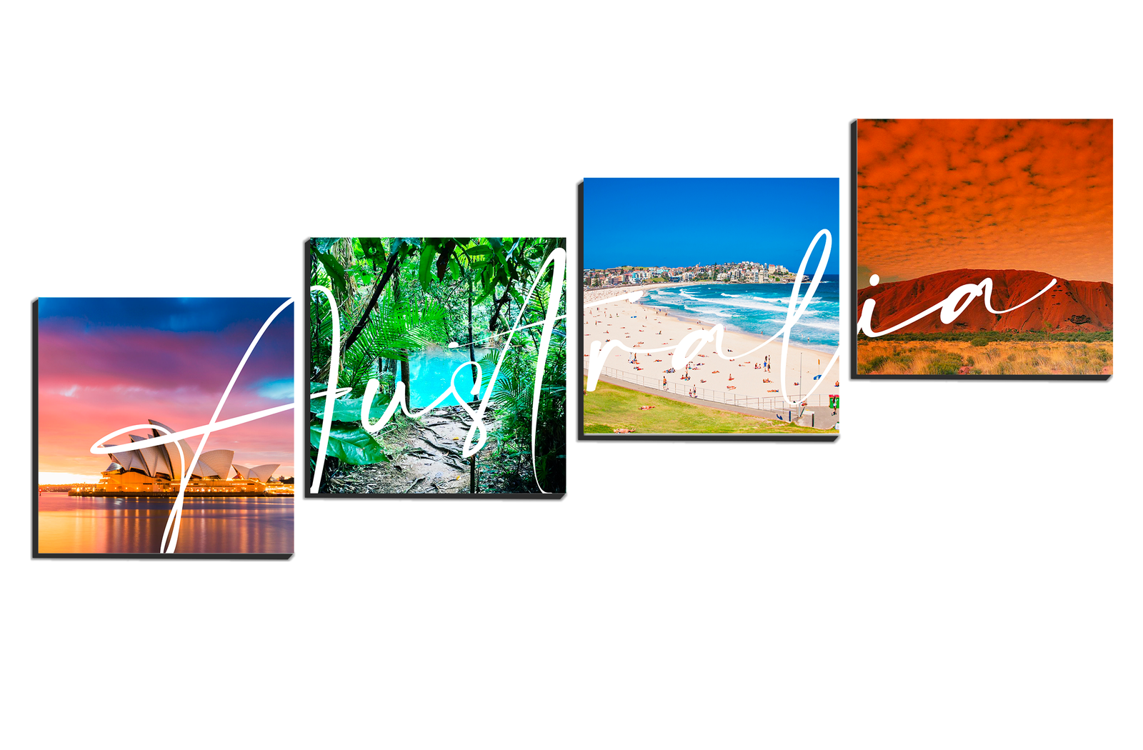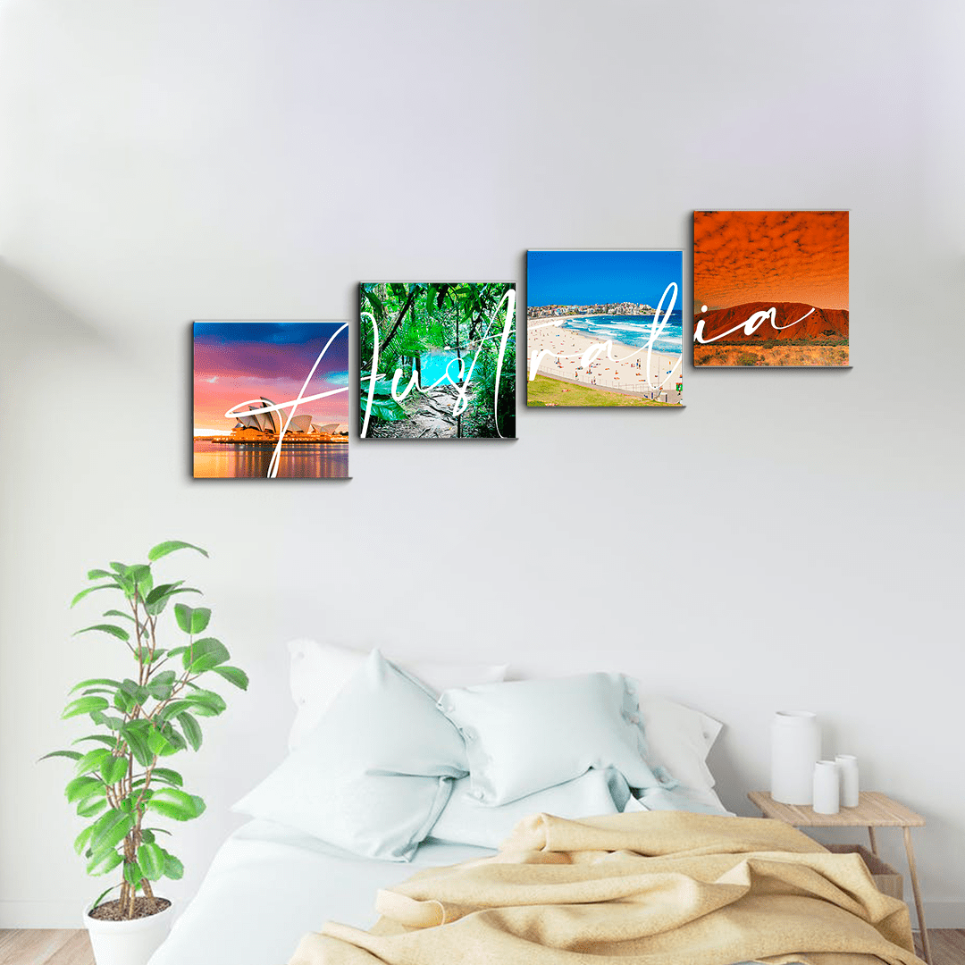 • Cuadros personalizados con fotografías del país de Australia montados en material PVC.